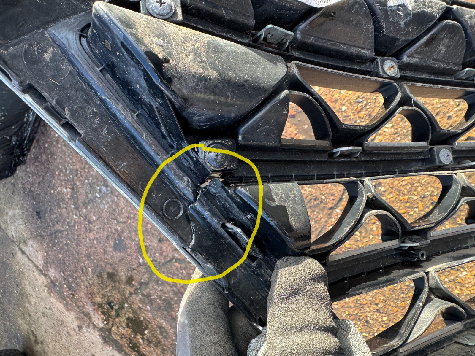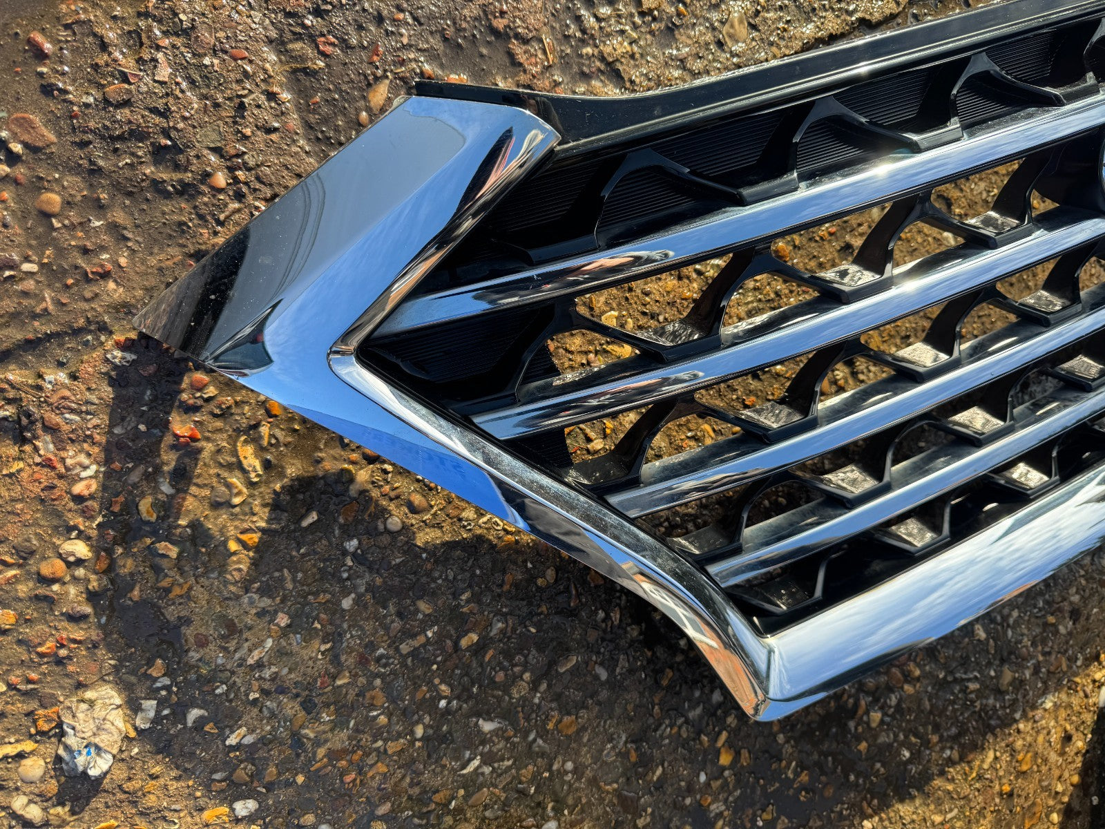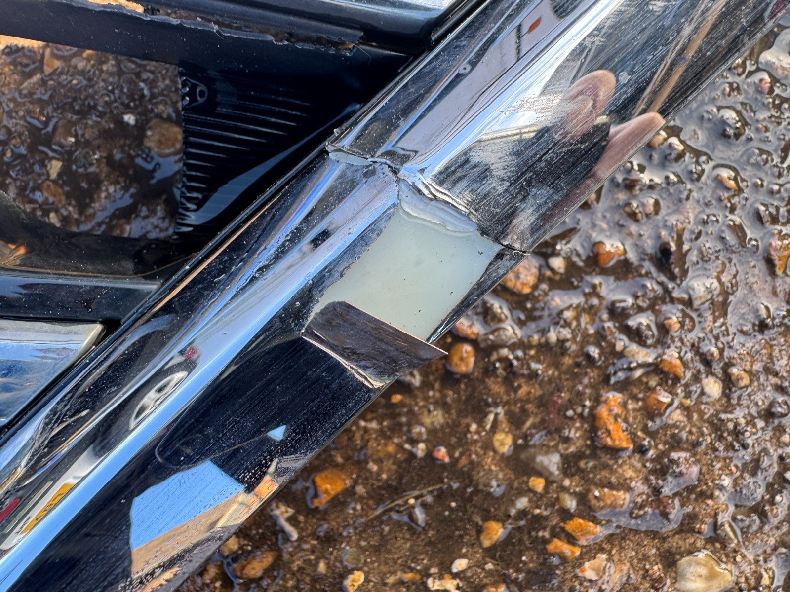 chrome trim is damaged, theres a crack in the backing, needs glue, see photos