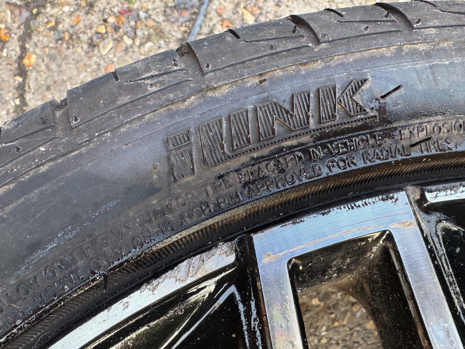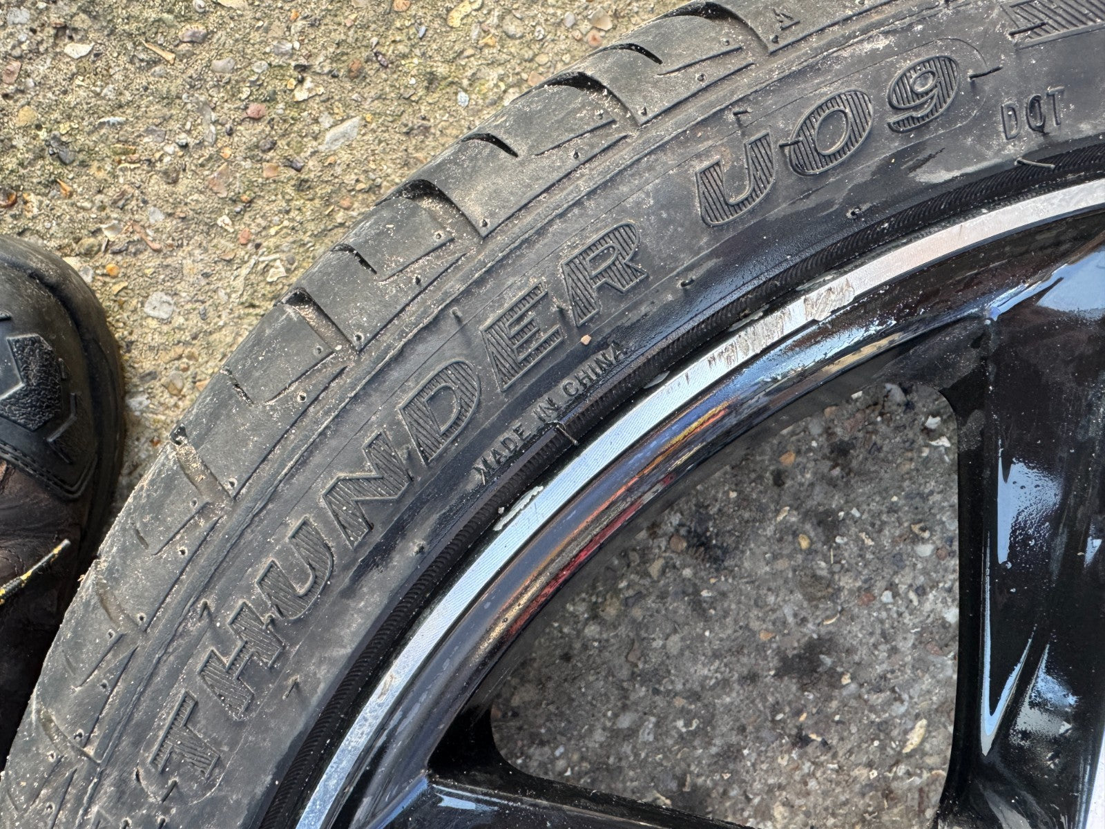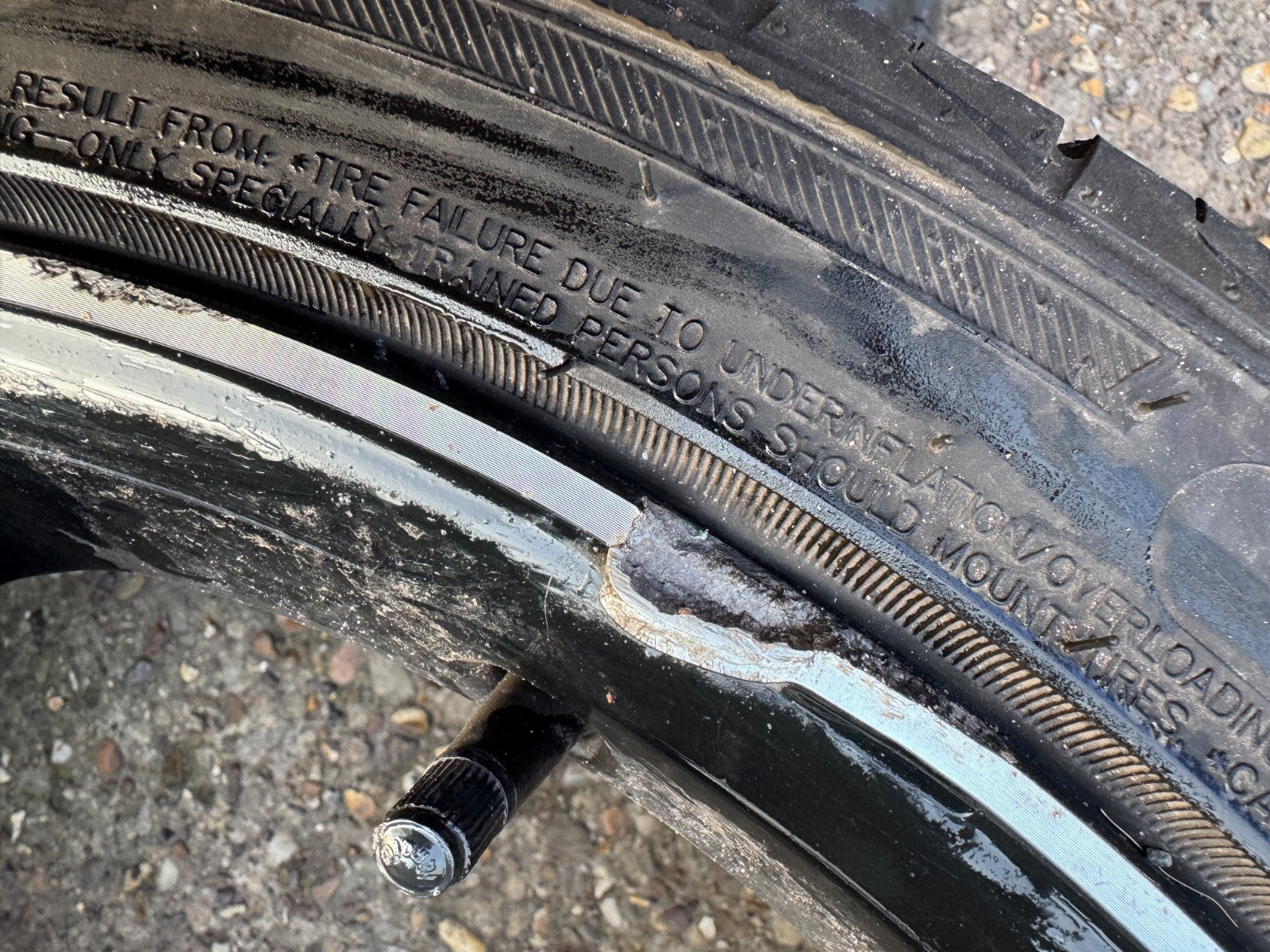 a scratched and damaged edge wheel but no buckles, no welds, no cracks, and a good tyre with plenty of tread
